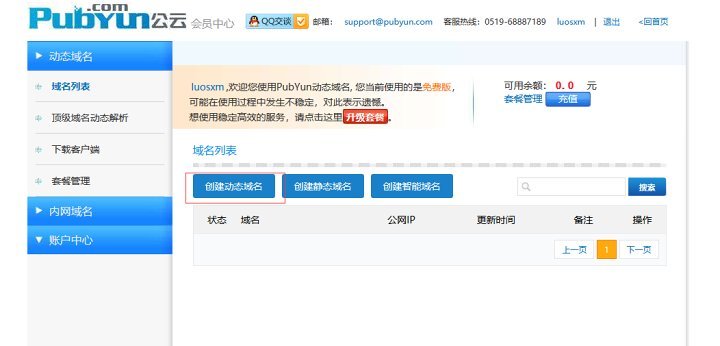 登录后点击【动态域名】下拉菜单里点击【域名列表】