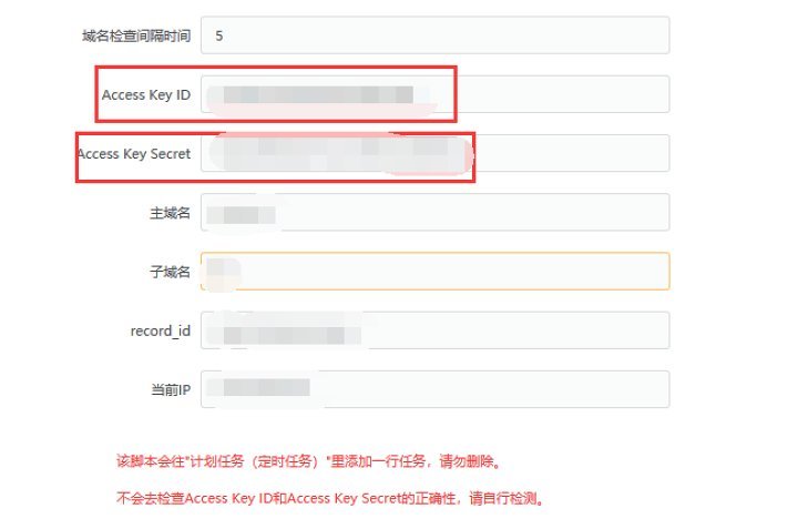 把AccessKeyID和AccessKeySecret填进去,主域名填刚刚申请的域名,如果你想直接通过主域名访问的话子域名填@即可,或者主域名另有打算子域名可以填其他的,然后可以通过 “子域名.主域名.后缀”进行访问,保存即可