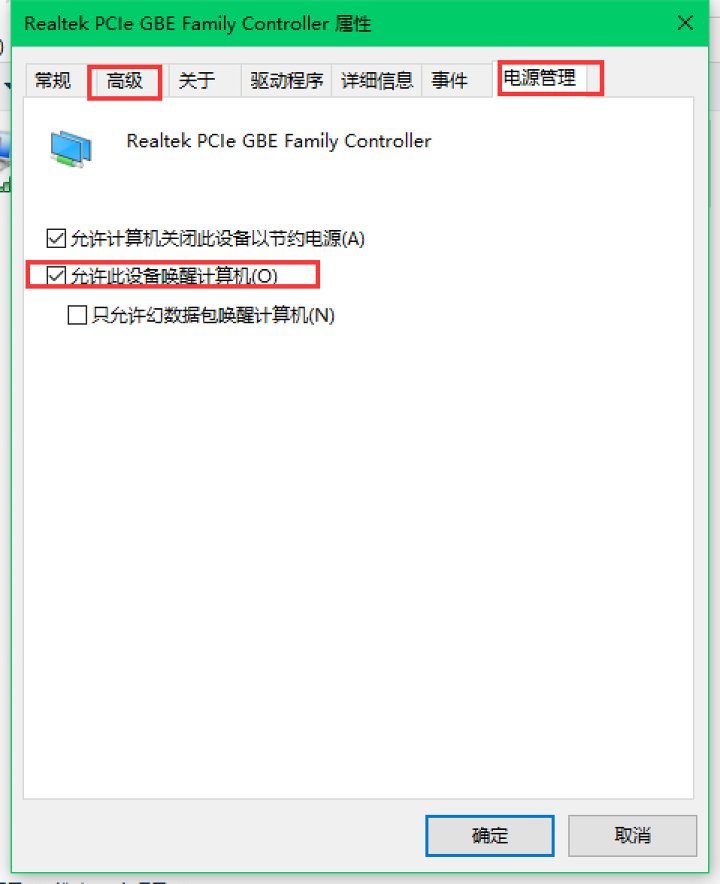 属性 列表里面把带有”唤醒”字样的都开启然后保存即可。