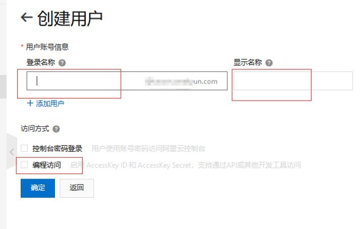 创建后就把AccessKeyID和AccessKeySecret信息记录好等下要用。
