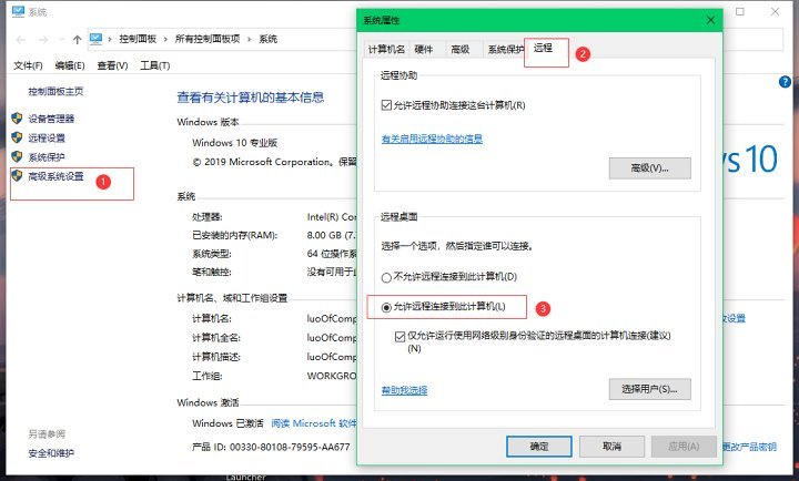 只要在桌面右击【我的电脑】点击底部的【属性】【远程设置】打开【允许远程连接到计算机】保存即可。账号没有更改过的话都是“Administrator” 密码则是你的开机密码。