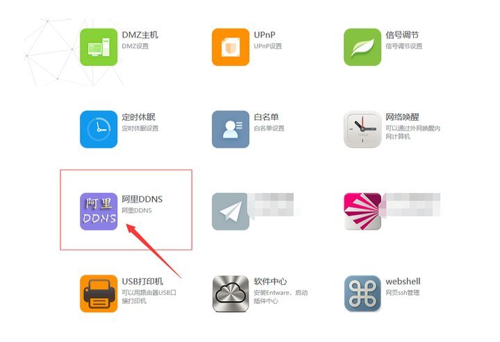 登录路由器后找到并打开aliyunDDNS插件,(不一定叫这个名字,只要插件功能一致即可)