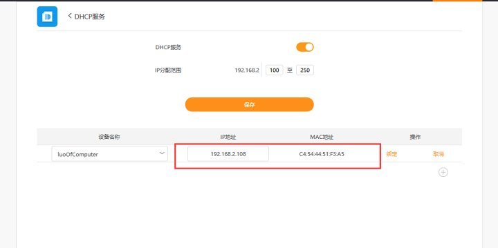 这里ip地址填写之前绑定mac地址时的ip地址,内部端口就是该ip地址使用设备的端口
