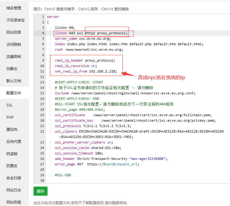 保存即可,至此nginx日志里的访问ip就不再是内部ip